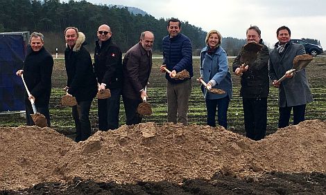 Politiker aus Stadt und Land unterstützten den Landfwirtschaftsminister (2.v.r.) und die beiden Gewschäftsführer beim ersten Spatenstich