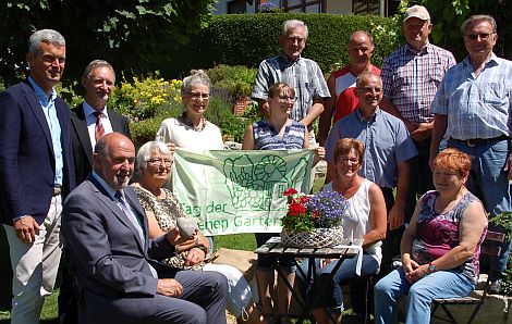 Landrat Gailler mit den Gartenbesitzern bei der Vorstellung des "Tages der offenen Gartentür"