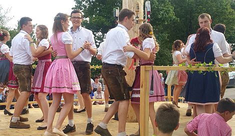 Alljährlich wird beim Feuerwehrgerätehaus der Baum aufgestellt. Bereits seit einigen Jahren wird er von zehn Tanzpaaren unter musikalischer Begleitung von Markus Moosburger und Stefan Prock ausgetanzt.