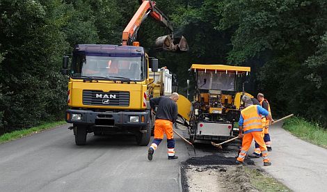 Restarbeiten zwischen dem Radweg und der neu asphaltierten Fahrbahn durchgeführt