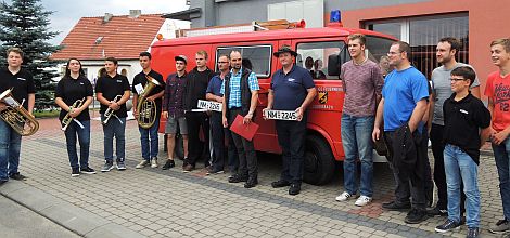 Musikalisch begleitet wurde die kleine Übergabefeier am Rathaus der Gemeinde Walce von der Jugendmusikgruppe der Feuerwehr Loderbach.