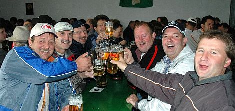 Der Mairegen im Brauereihof störte wenig - der Lammsgold-"Regen" in der Halle "brachte Segen".