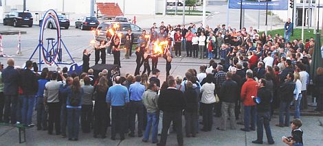 Bereits zum dritten Mal fand das Fest im Mastenpark auf dem Werksgelände statt. Neu war allerdings, dass die Mitarbeiter mit ihren Angehörigen teilnehmen konnten. Mehr als 500 Mitarbeiter und deren Familienangehörige - darunter rund 100 Kinder - amüsierten sich bei Speis, Trank und Musik der Mitarbeiterband "Pole Position".