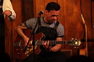 Voller Spielfreude und mit einem fantastischen Drive betätigte Chris Kaempfert abwechselnd sein minimalistisches Standschlagzeug und sein mit Küchenquirlen gespieltes Waschbrett und sang dazu wie ein Zeiserl.