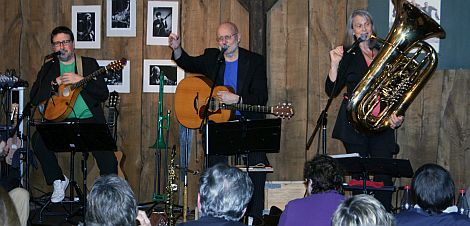 Hanne Balzer, Jörg Ermisch und Michael Empelius marschierten mit ihren bunten Posaunen ins Klassenzimmer ein und gewannen im Nu die Herzen der Zuhörer für sich. Sie erreichten das nicht nur mit charmanten Zwischentexten und korrekten politischen Statements, sie bestachen auch mit (aber)witzigen Songs wie der umgemodelten ursprünglich irischen Ballade von der einsamen Lehrerin Dagma’ („Wie viele Dagmen sind denn heute im Publikum?).